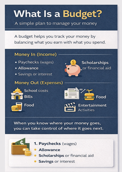 Budgeting is like making a plan for your money so you don’t run out too fast. It helps you save for things you want while still paying for things you need.